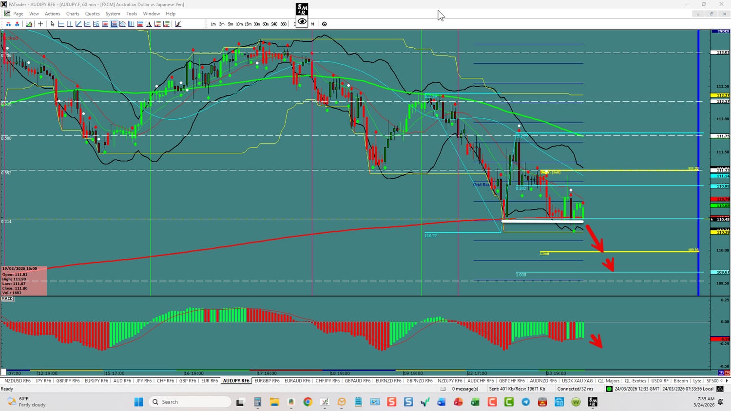 Forex Strategy is Bearish: We are currently @ 110.48. If we can break support here, we are looking to continue to the ATR target @ 109.98 area and then to the 1.000 Fibo @ 109.67 area. We have convergence on the hourly. USDX is currently threatening up. Watch the USDX for direction. The average daily true range (ATR) for the pair currently is 124 pips per day and it’s 90-day average is 110 pips per day.