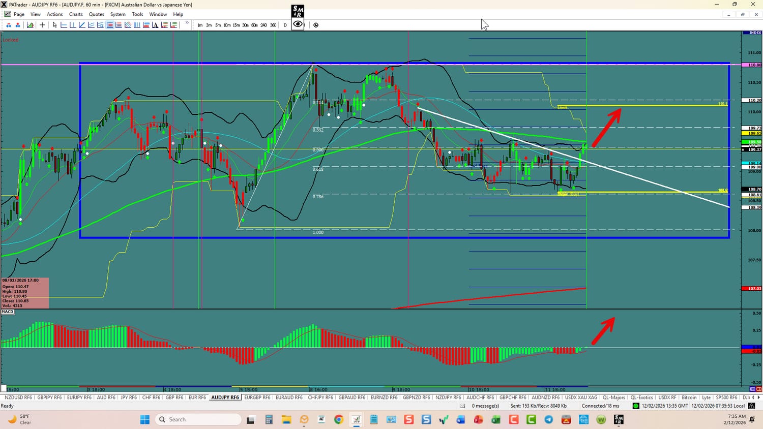 Forex Strategy is Bullish: We are currently @ 109.37 in a range. We are looking for a continuation to the ATR Target @ 110.14 area. The overall target is the Range Top @ 110.80 area. We have convergence on the hourly. USDX is currently down. Watch the USDX for direction. The average daily true range (ATR) for the pair currently is 146 pips per day and it’s 90-day average is 100 pips per day.