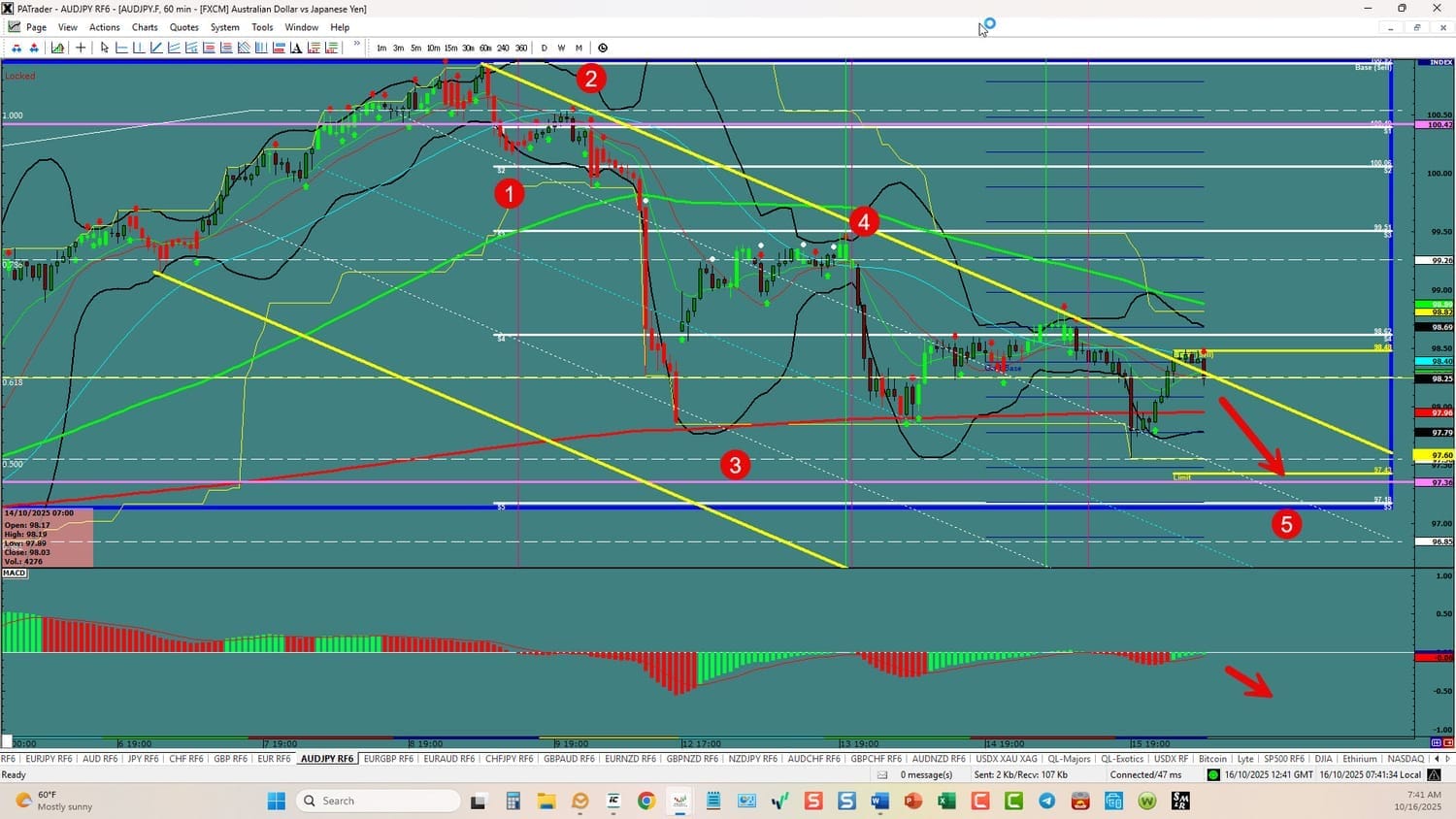 Forex Strategy Bearish: We are currently @ 98.25 in a 5th wave. We have convergence in play and anticipating a continuation to the downside (due to USDX). We are looking for a continuation to the ATR Target @ 97.43 area with a further target the Day chart support @ 97.36. USDX is currently DOWN – if it flips this probably won’t happen. Watch the USDX for direction. The average daily true range (ATR) for the pair currently is 105 pips per day and it’s 90-day average is 78 pips per day.