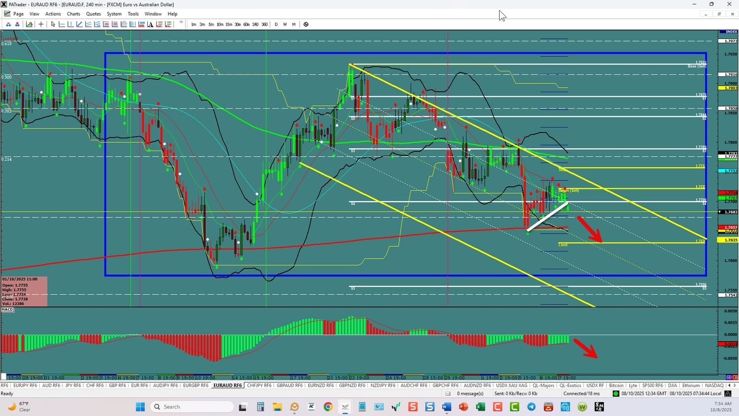 Forex Strategy Bearish: We are currently @ 1.7683 in a channel in a range. We have convergence in play for the continuation down. With the break of slope support here, we are looking for a continuation to the ATR target @ 1.7635 area with a further target the range bottom @ 1.7550. USDX is currently UP – if it flips this won’t happen. Watch the USDX for direction. The average daily true range (ATR) for the pair currently is 92 pips per day and it’s 90-day average is 105 pips per day.