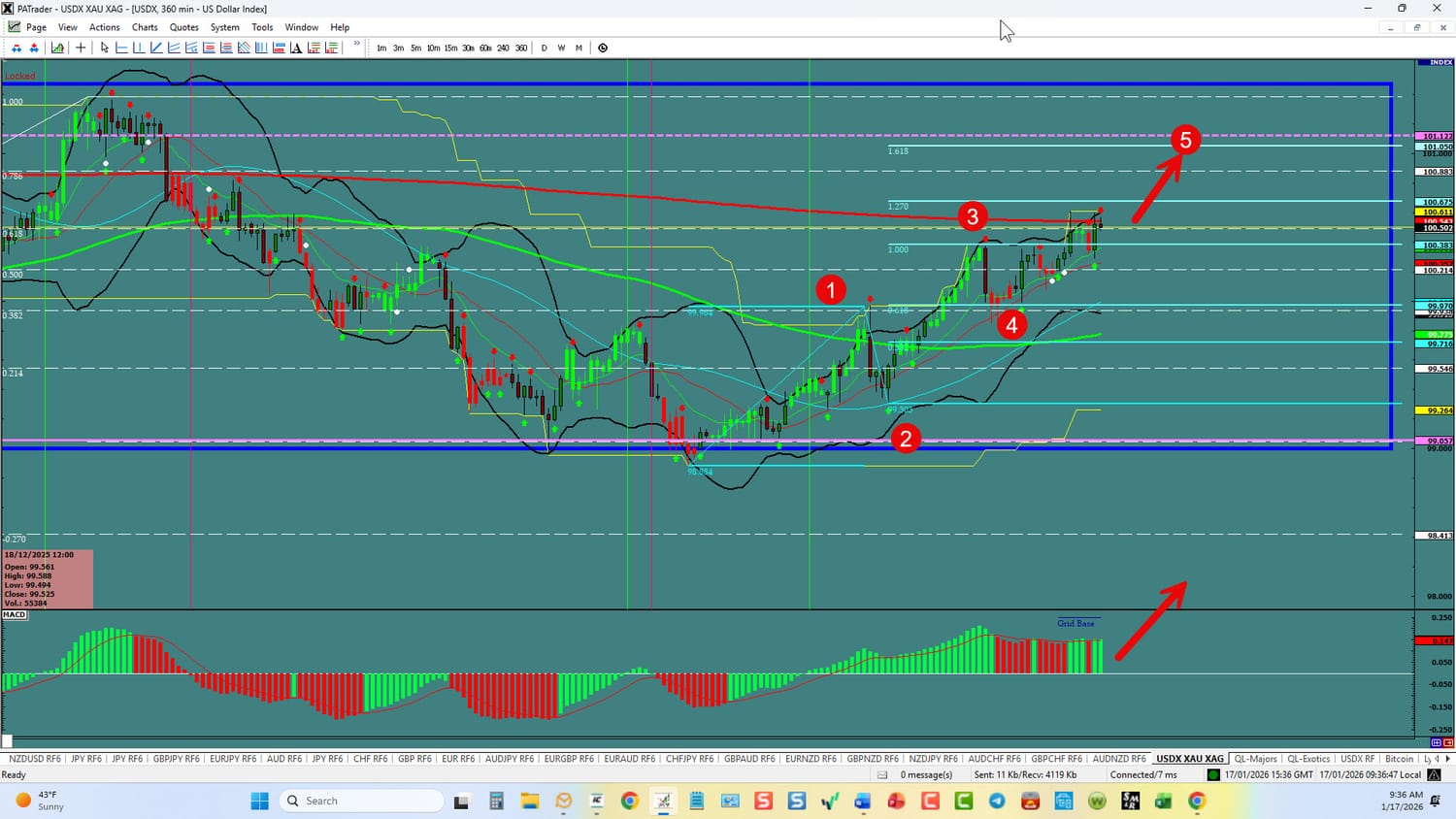 USDX: Forex Strategies Bullish: Currently, we are in a 5th wave up. We have convergence on the hourlies for the long. The pairs should prove it out when the market opens. All of this could change in a heartbeat and will affect the currencies below. ATR’s are starting to rise now that we are in winter trading. BE SMART - TRADE WITH STOPS!!!!