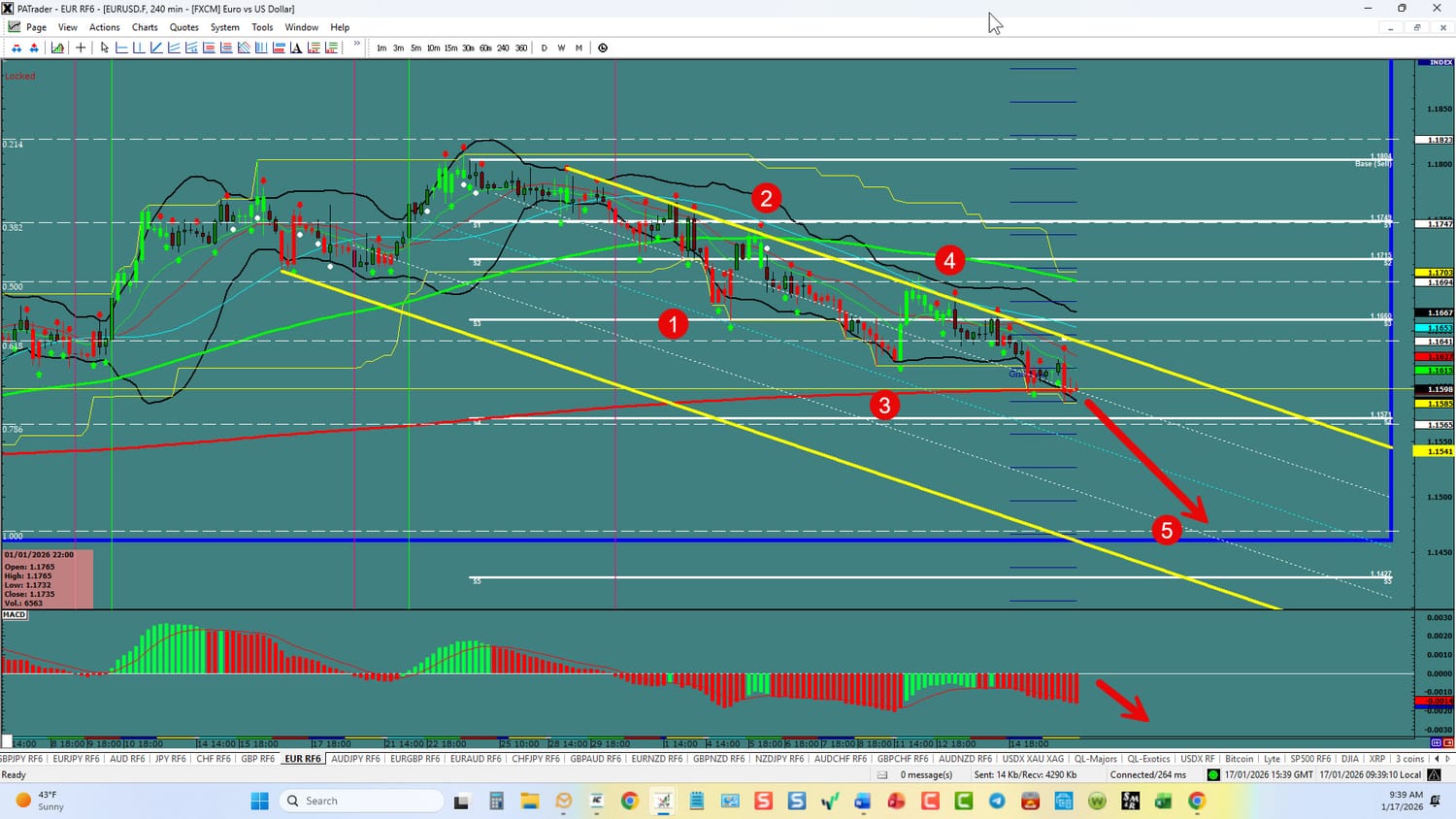Forex Strategies Bearish: We are currently @ 1.1598 in a channel. We are looking for a continuation of the 5th wave to the range bottom @ 1.1450. The ATR for the pair currently is 44 pips and its 90-day average is 48 pips. NOT TRADEABLE!