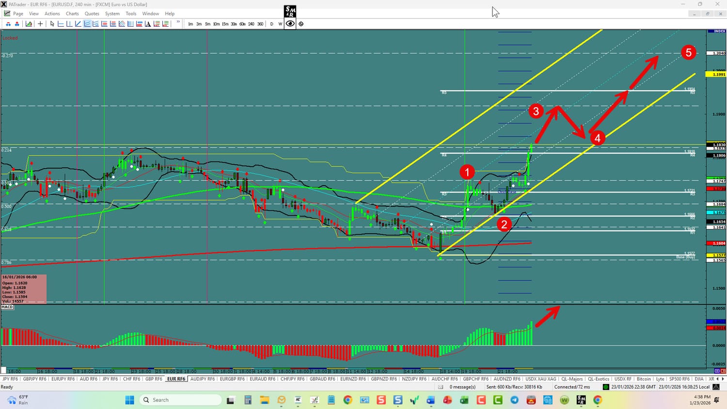 Forex Strategies Bullish: We are currently @ 1.1598 in a 3rd wave in a channel. We are looking for a continuation of the 5th wave @ 1.2040. The ATR for the pair currently is 55 pips and its 90-day average is 48 pips. NOT TRADEABLE!