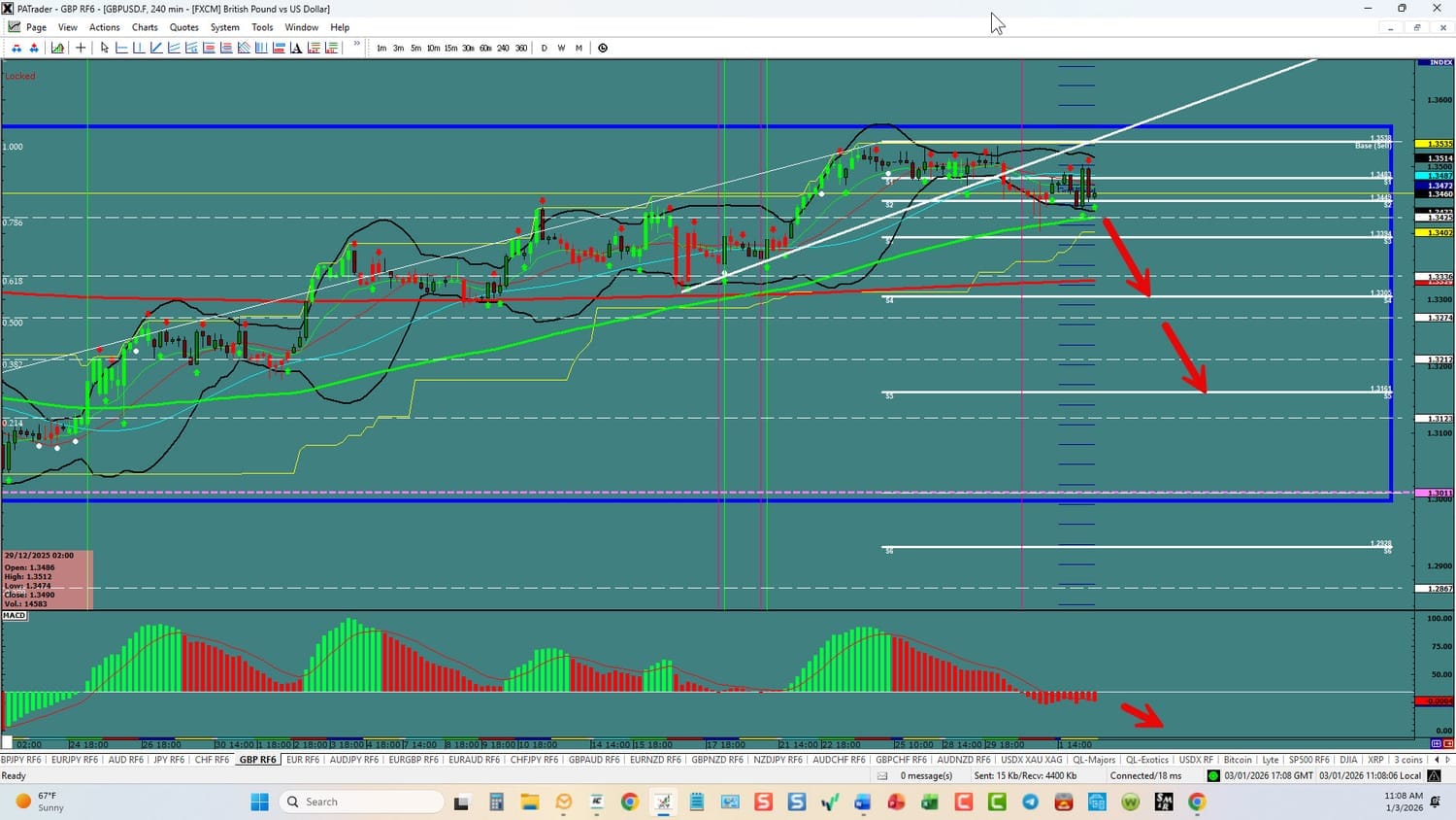 Forex Strategies: Bearish: We are currently @ 1.3460 in the start of a short move. We are looking for a continuation initially to the 1.3300 area and possibly to the S5 @ 1.3161 area. Watch the USDX for direction. The average daily true range (ATR) for the pair currently is 60 pips and it 90-day average is 69 pips.