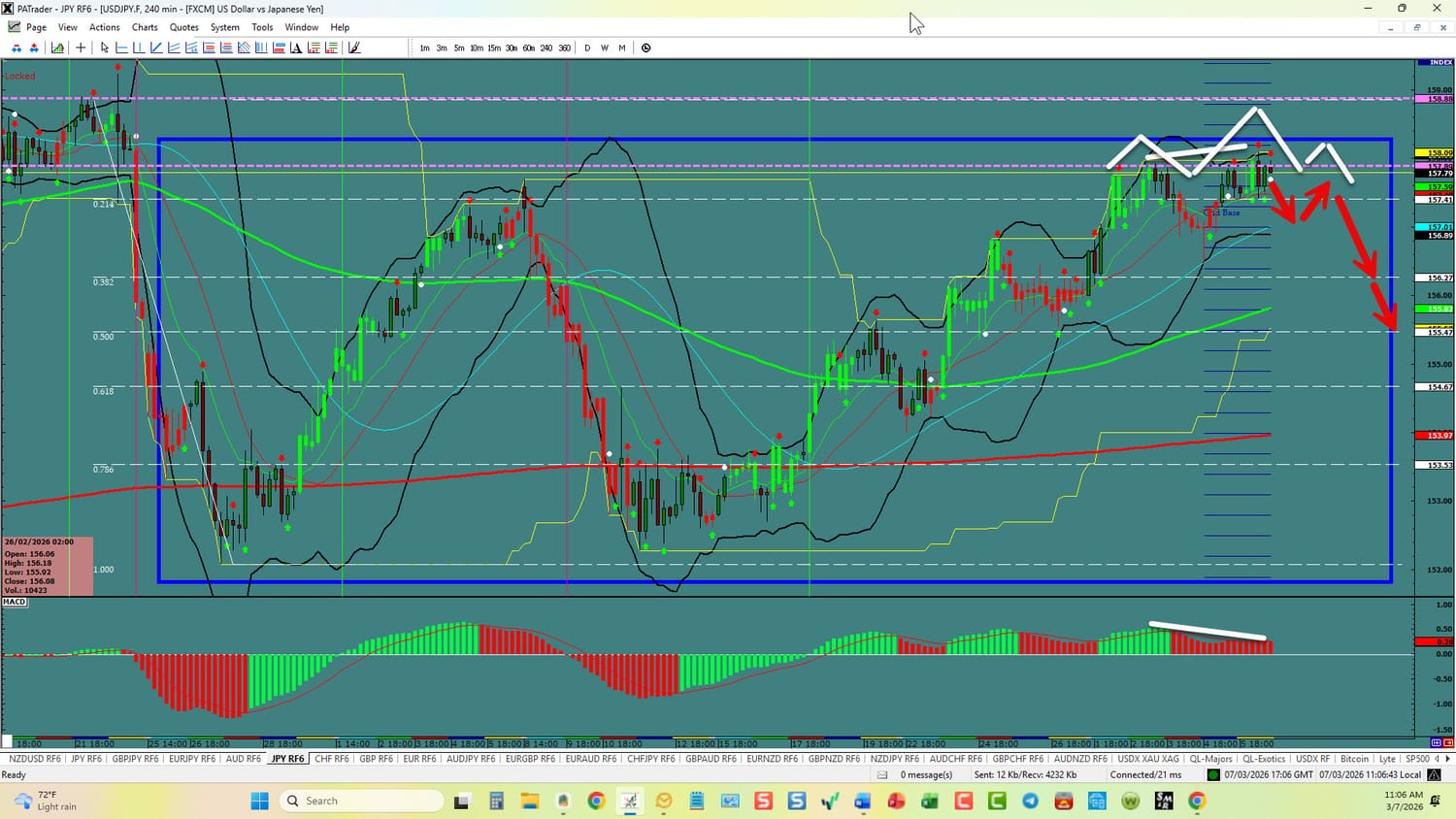 Forex Strategies Bearish: We are currently @ 157.79 after 5 waves up and a double top in place. WE are looking to quickly finish a head and shoulders and then a continuation to the 0.500 Fibo @155.47 area. We have divergence in play. The average daily true range (ATR) for the pair 111 pips and it 90-day average is 102 pips.