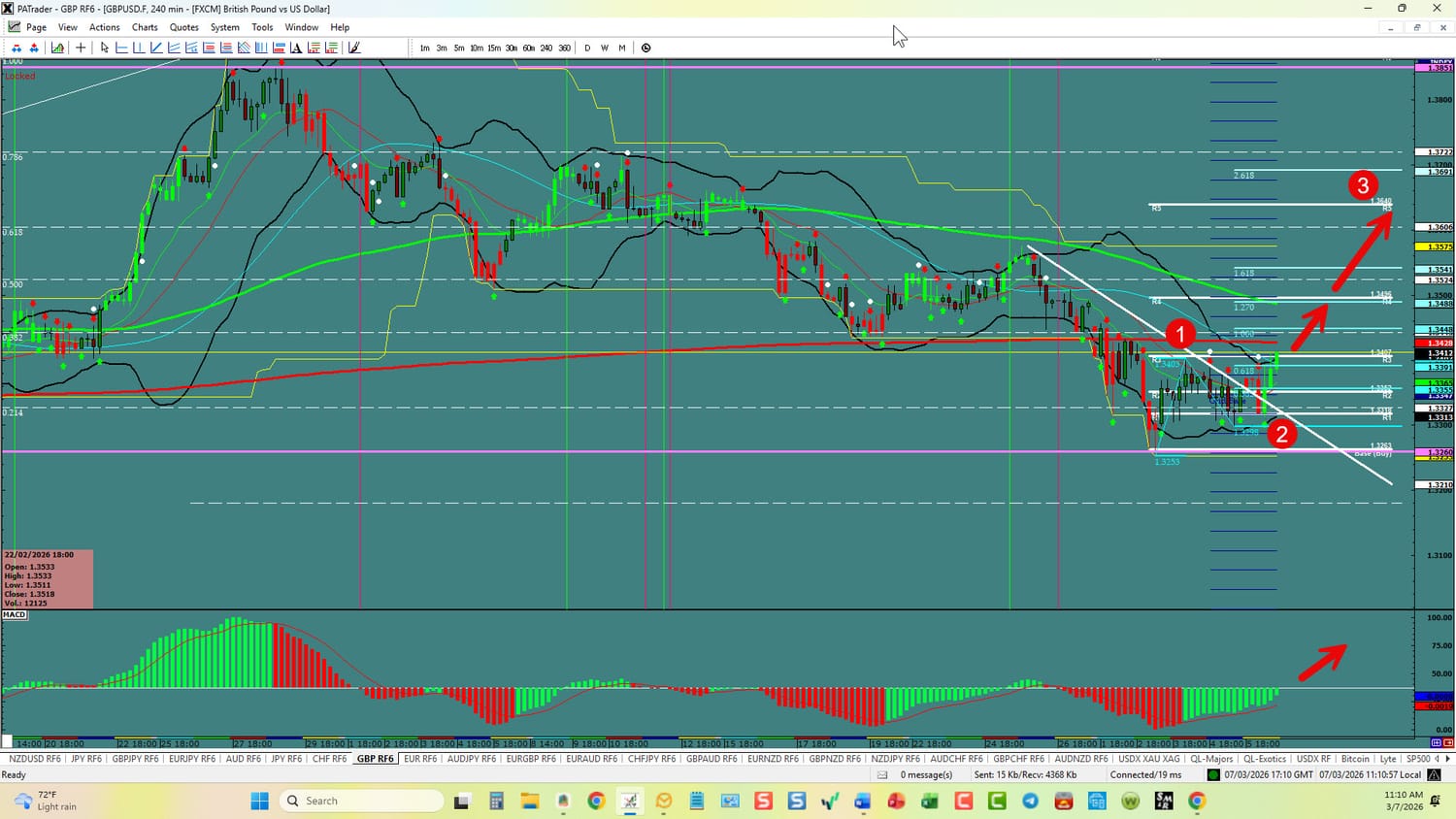 Forex Strategies: Bullish: We are currently @ 1.3412 in a 3rd wave after a head and shoulders pattern for the reversal. We are looking to continue to the R5 @ 1.3640 area. Watch the USDX for direction. The average daily true range (ATR) for the pair currently is 94 pips and it 90-day average is 75 pips.