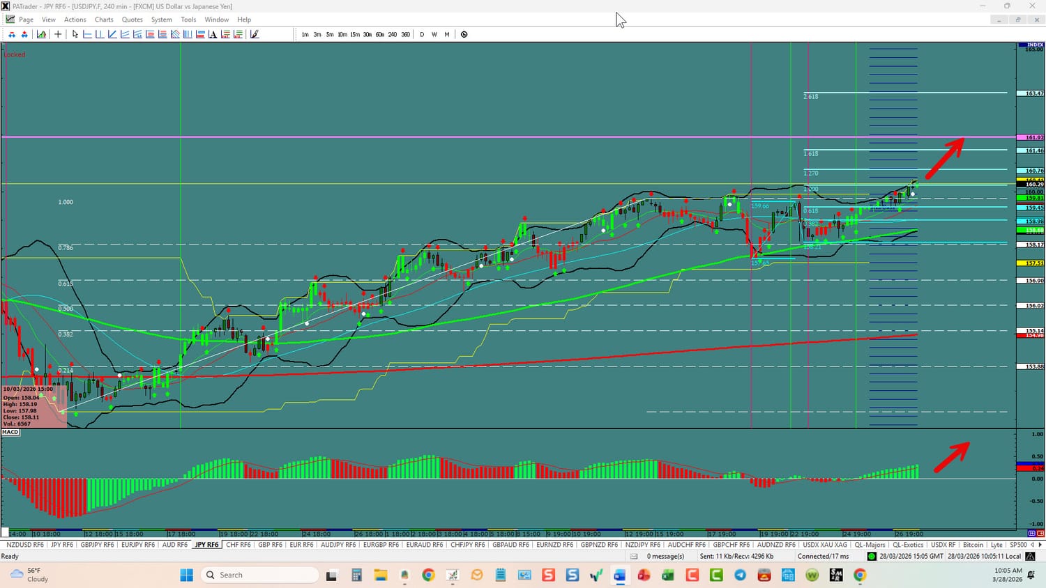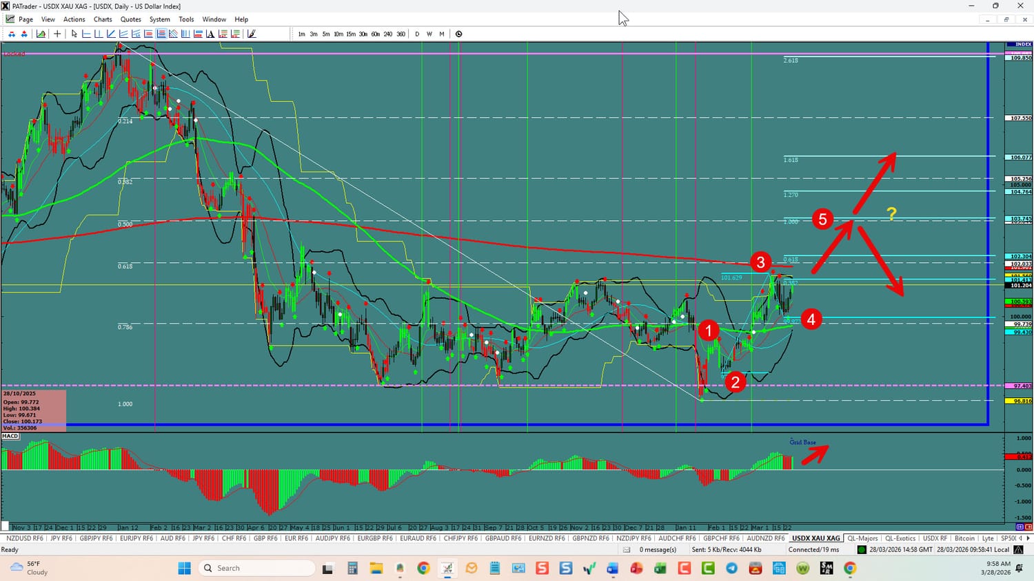 USDX: Forex Strategies Bullish: We are just starting a possible 5th wave up. We are looking for a continuation to the 1.000 Fibo @ 103.745 area and then decision time. The pairs should prove it out when the market opens. All of this could change in a heartbeat and will affect the currencies below. ATR’s are slightly lower than last week. BE SMART - TRADE WITH STOPS!!!!