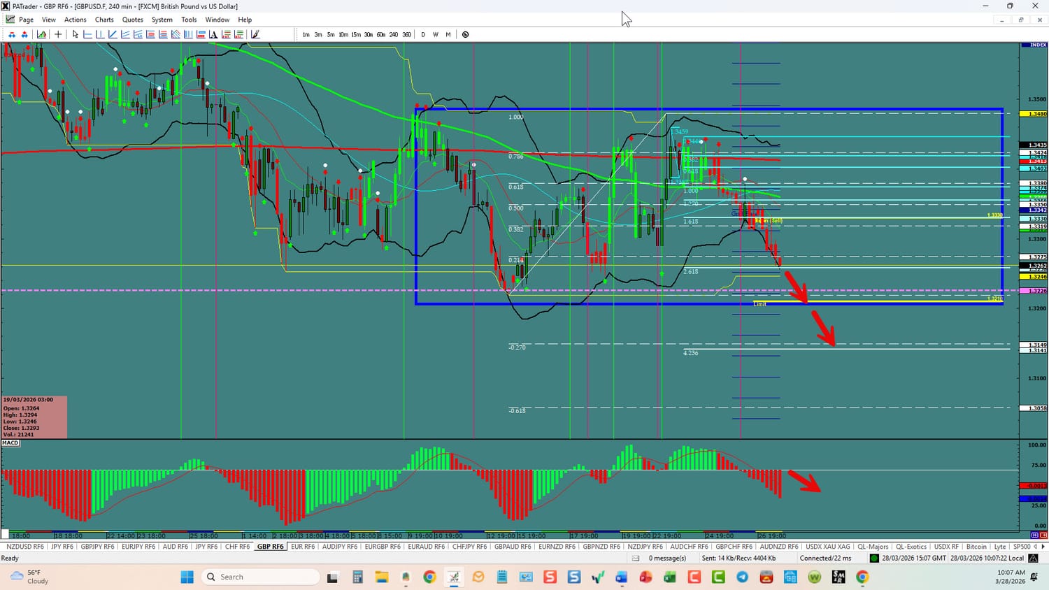 Forex Strategies: Bearish: We are currently @ 1.3262 in a range. We are looking to continue to the 4.236 Fibo @ 1.3140 area. Watch the USDX for direction. The average daily true range (ATR) for the pair currently is 110 pips and it 90-day average is 85 pips.