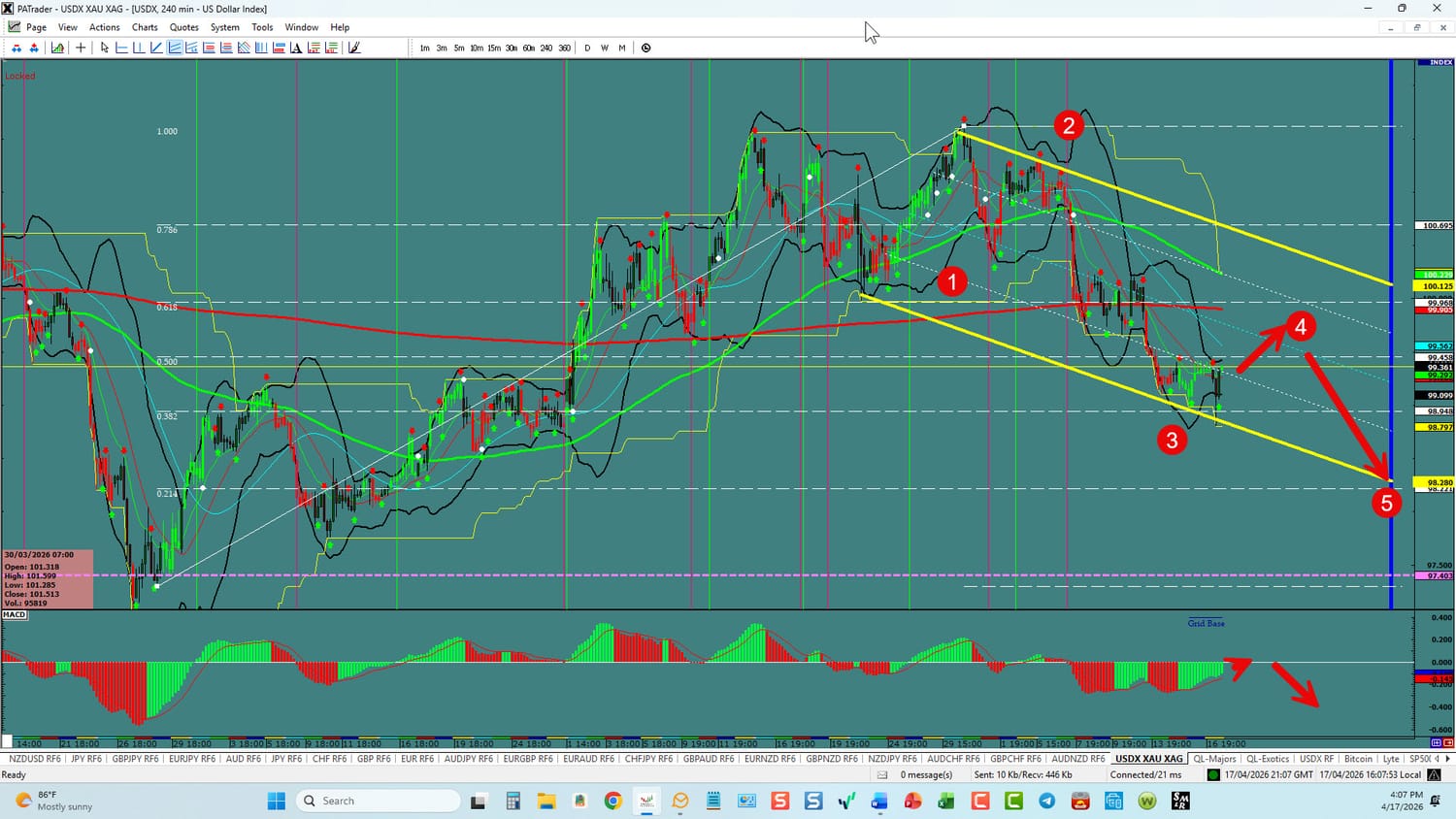 USDX: Forex Strategies Waiting: We could go either way. We are looking for a possible 4th wave up to a 5th wave down. The pairs should prove it out when the market opens. All of this could change in a heartbeat and will affect the currencies below. ATR’s are about the same as last week. BE SMART - TRADE WITH STOPS!!!!