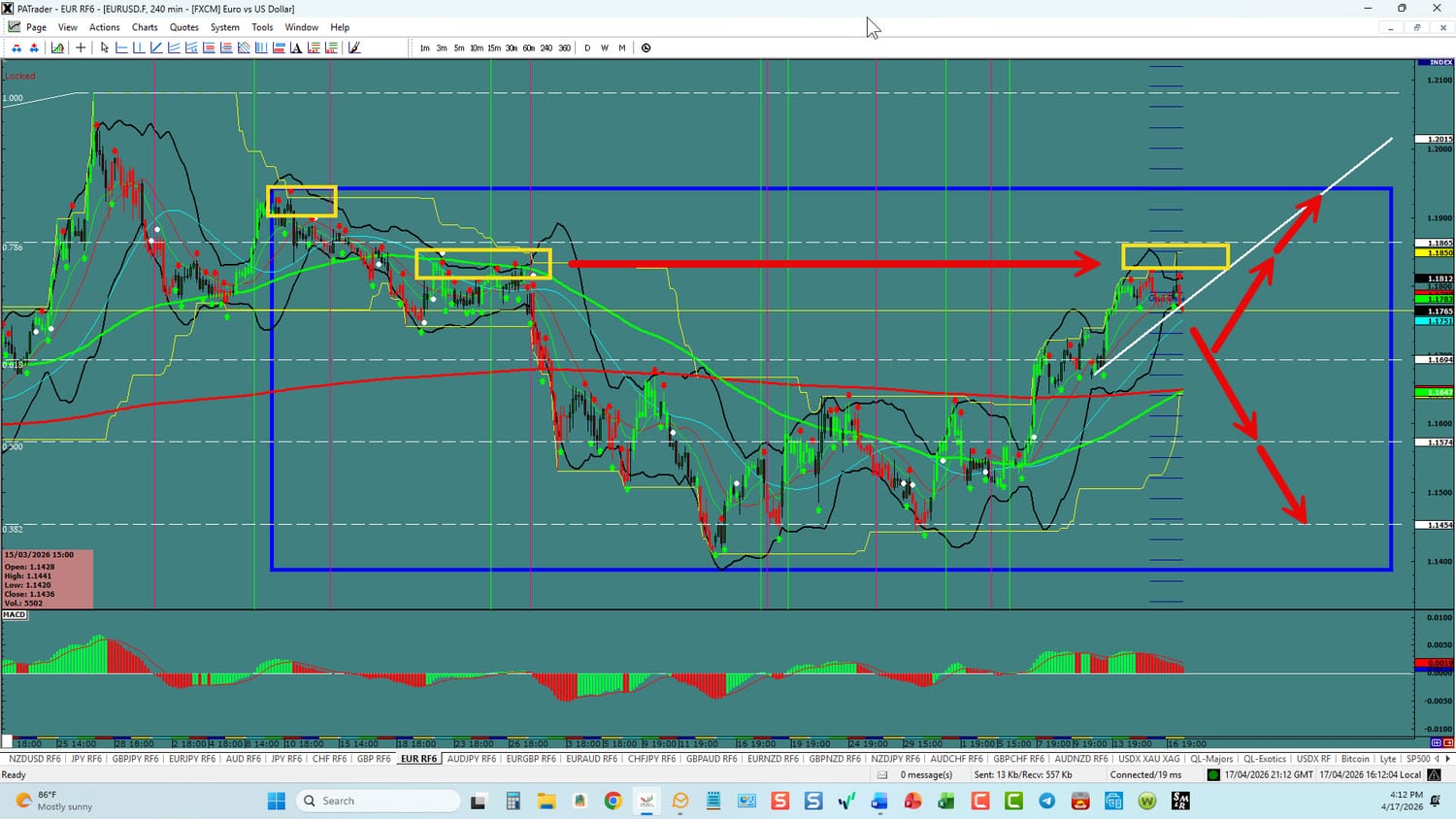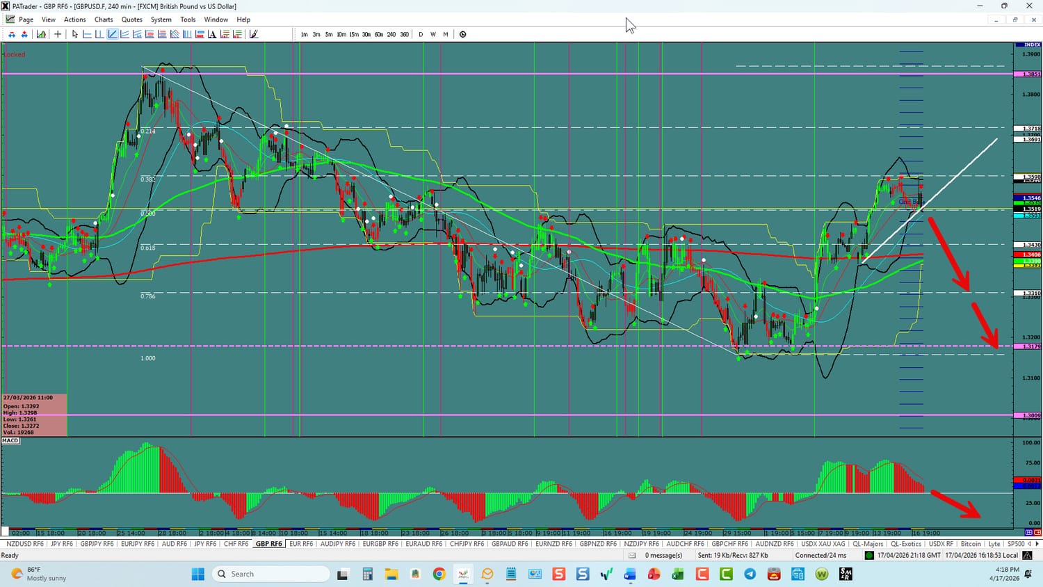 Forex Strategies Waiting but bearish bias: We are currently @ 1.1765 at a significant top. We could do a short 4th wave to a 5th wave up or continue down. If down look for the 0.214 Fibo @ 1.1454. The ATR for the pair currently 71pips and its 90-day average is 73pips.