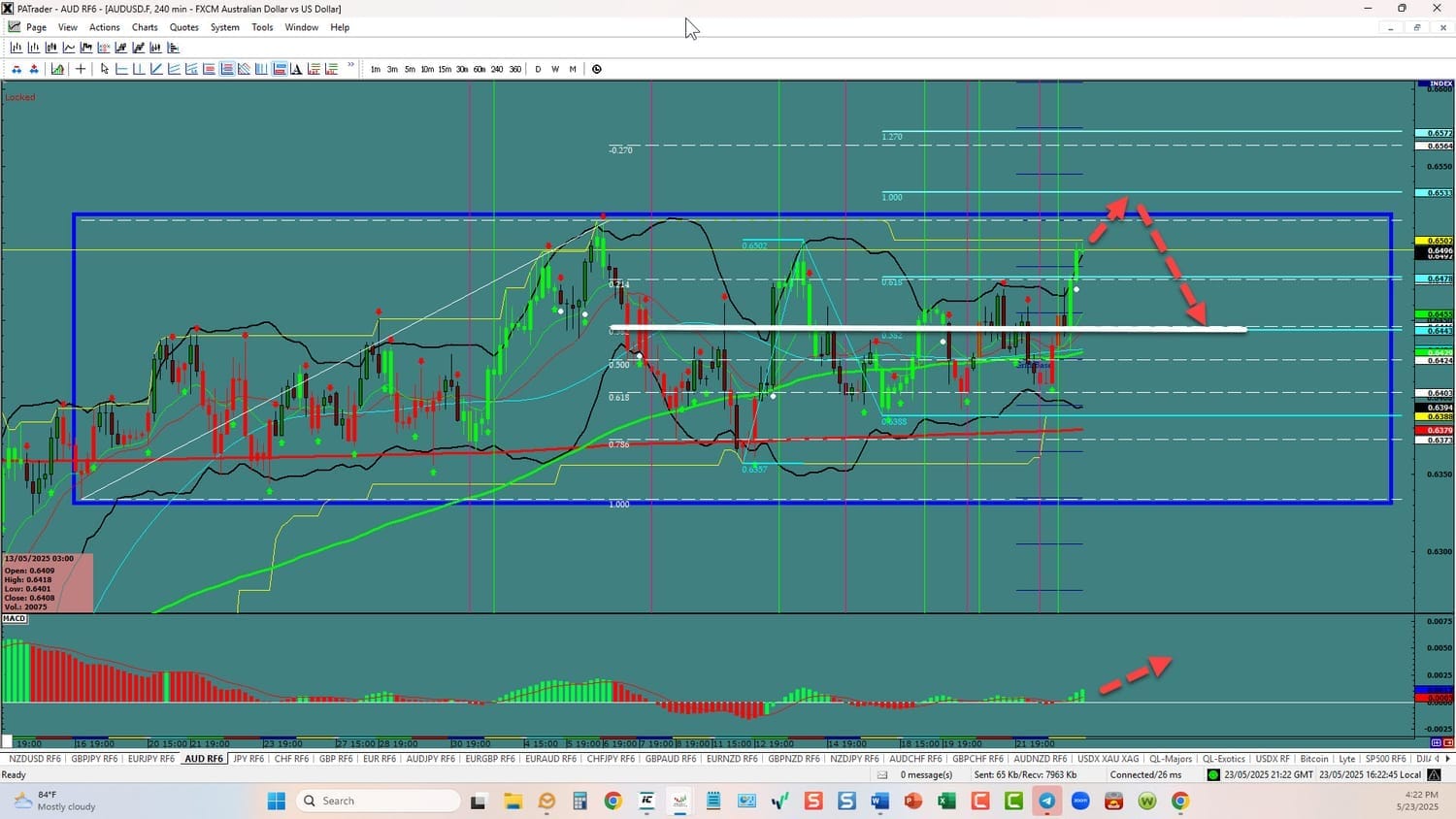 Forex Strategies: Bullish to Bearish: We are currently @ 0.6496 in a tight range. We are looking to continue to the top @ 0.6515 and then sell off. Watch the USDX for direction. The average daily true range (ATR) for the pair currently is 72 pips and it 90 day average is 73 pips.
