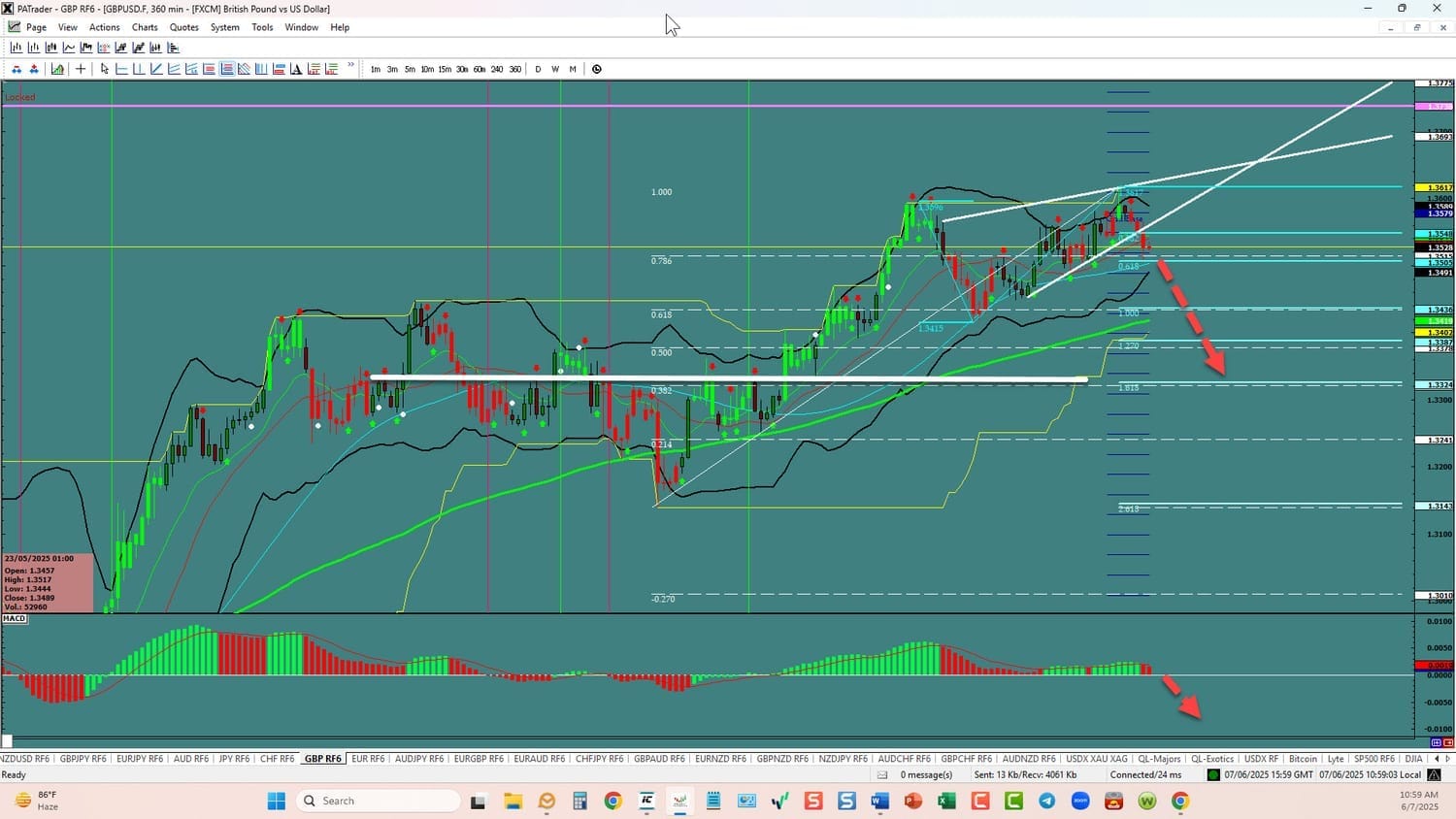 Forex Strategies Bearish: We are currently @ 1.3528 after a rising wedge breakout. We expect a move to the 1.618 Fibo @ 1.3324 (also equilibrium). Watch the USDX for direction. The average daily true range (ATR) for the pair 85 pips and it 90 day average is 100 pips.