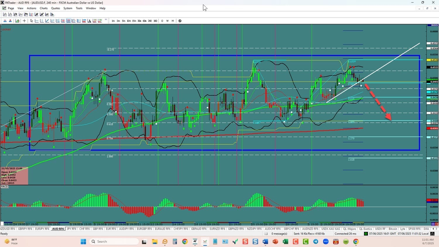 Forex Strategies: Bearish: We are currently @ 0.6492 in a tight range. We are looking to continue to the1.000 Fibo @ 0.6400. Watch the USDX for direction. The average daily true range (ATR) for the pair currently is 59 pips and it 90 day average is 73 pips.