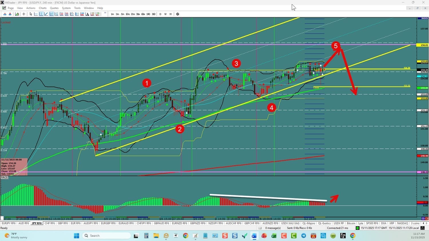 Forex Strategies Bearish: We are currently @ 156.40 after putting in a top.. We are looking to bounce and put in a 2 wave and then continue to the 154.50 area. We have convergence in play on the hourlies. The average daily true range (ATR) for the pair 104 pips and it 90-day average is 119 pips.