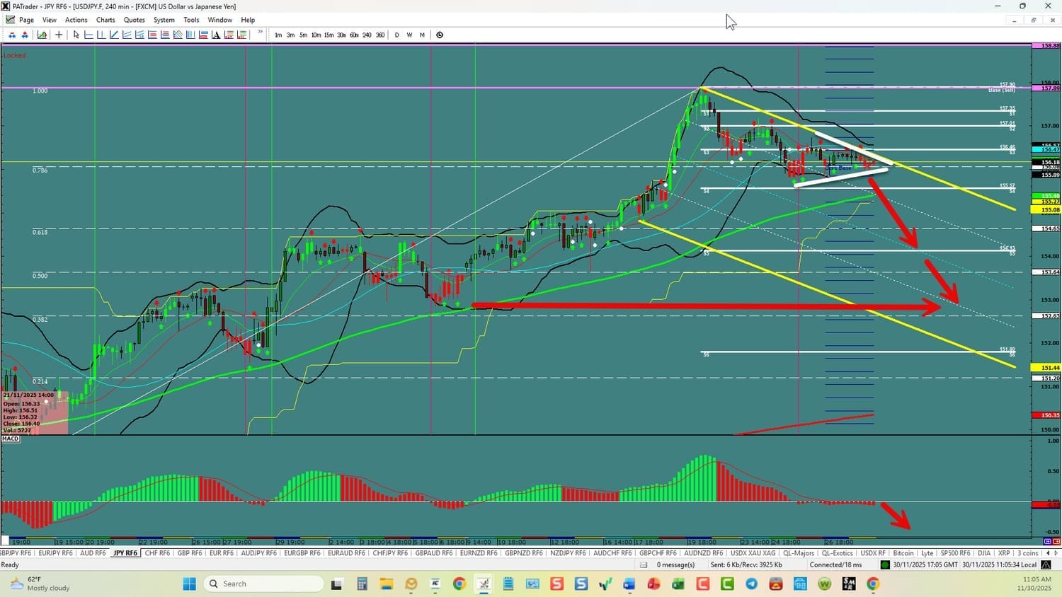 Forex Strategies Bearish: We are currently @ 156.18 in a pennant which is bearish. We are looking to continue to the 153.00 area. We have convergence in play on the hourlies. The average daily true range (ATR) for the pair 105 pips and it 90-day average is 118 pips.