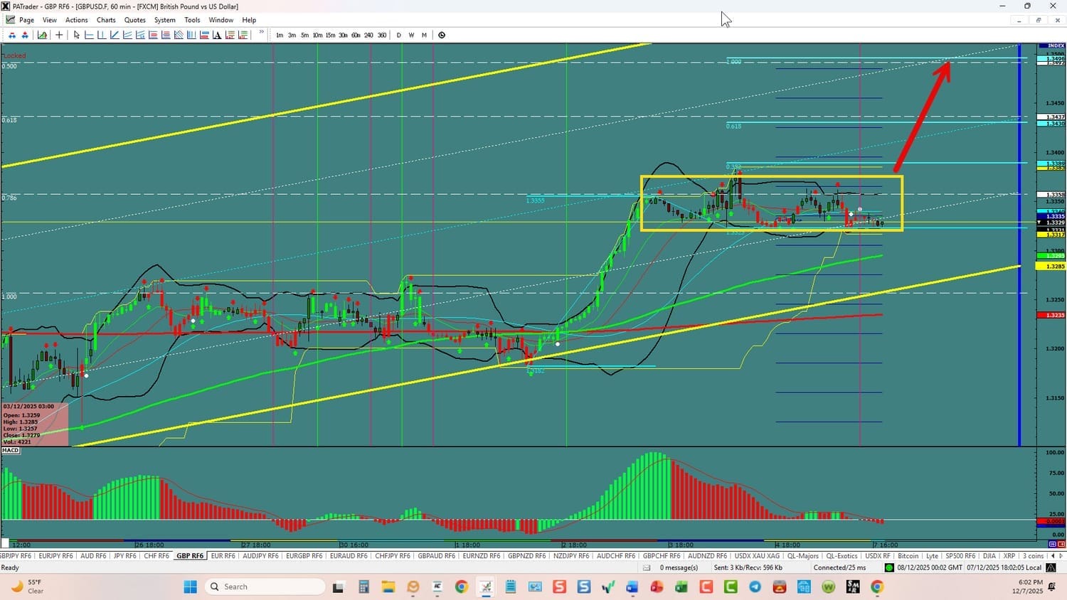 Forex Strategies: Bullish bias but waiting: We are currently @ 1.3329 bullish rectangle ( But MACD down. We are looking for a continuation to the 1.000 Fibo @ 1.3496 area. Watch the USDX for direction. The average daily true range (ATR) for the pair currently is 77 pips and it 90-day average is 82 pips.