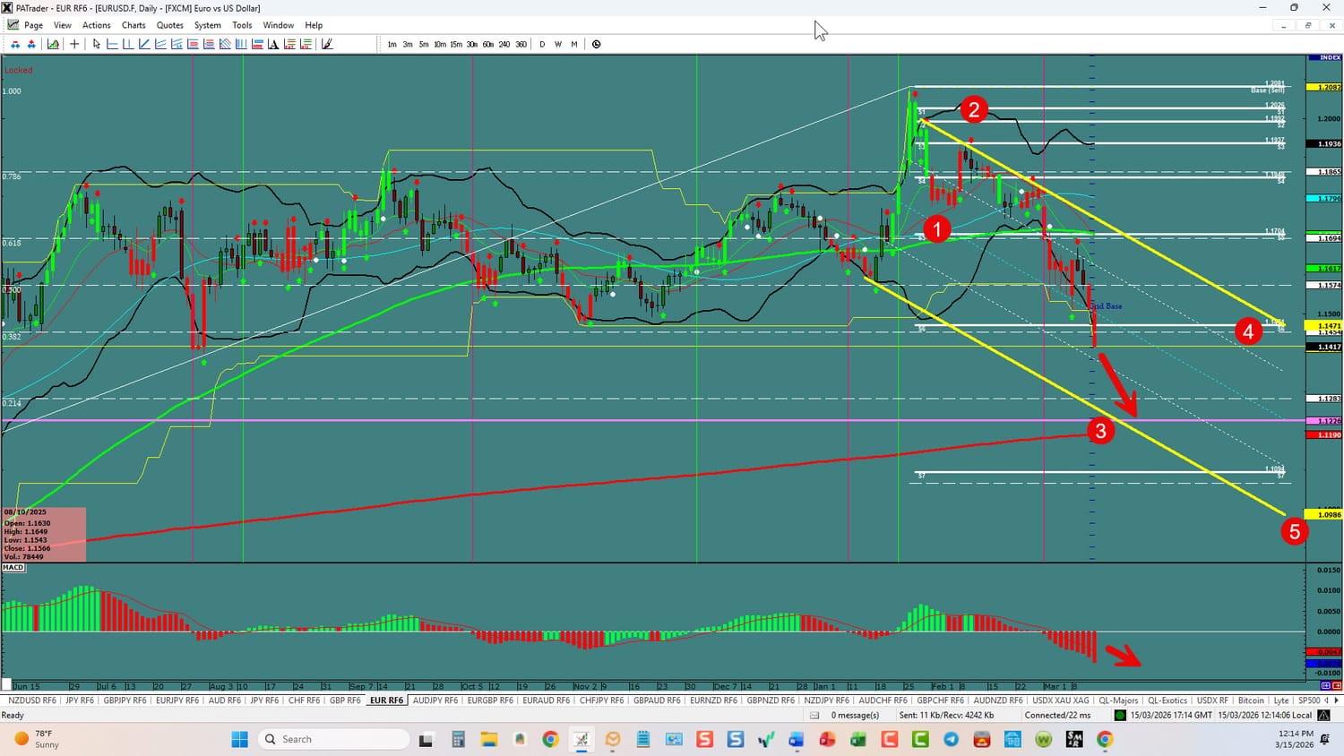 Forex Strategies Bearish: We are currently @ 1.1417 . We are in a 3rd wave. We are looking to continue to the Day chart support @ 1.1226 area. The ATR for the pair currently 87 pips and its 90-day average is 60 pips.