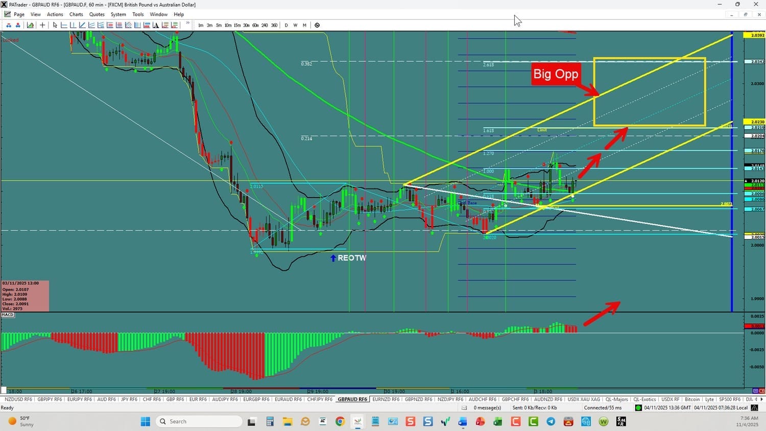 Forex Strategy is Bullish: We are currently @ 2.0120 with convergence for the upside move. We have the start of a channel, and we are looking for a continuation to the ATR Target @ 2.0219 area. USDX is currently up. Watch the USDX for direction. The average daily true range (ATR) for the pair currently is 145 pips per day and it’s 90-day average is 124 pips per day