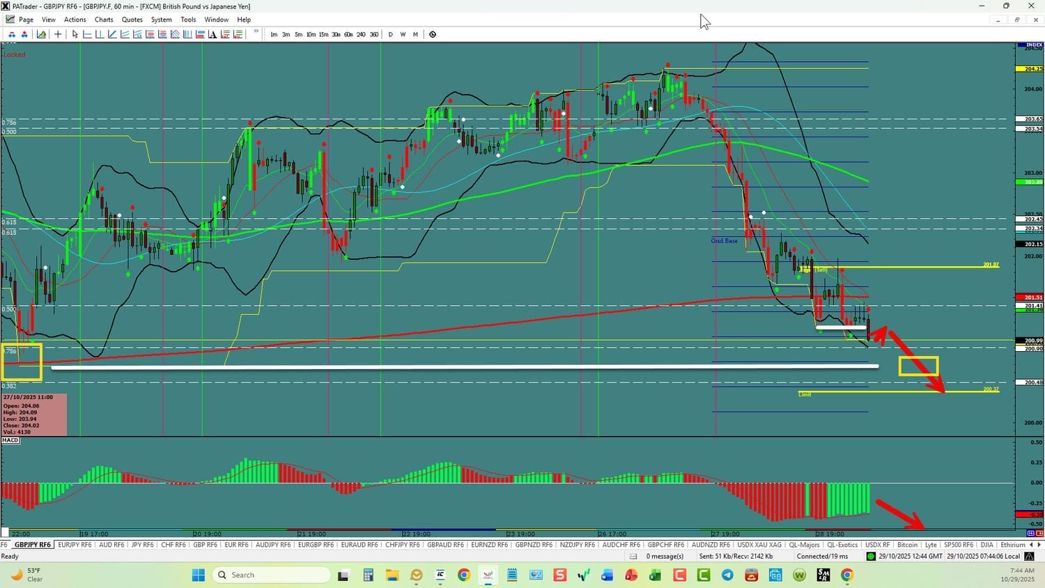 Forex Strategy Bearish: We are currently @ 200.99 with convergence for the downside move. We just broke support here, we are looking for a continuation to the ATR Target @ 200.37 area. USDX is currently up. Watch the USDX for direction. The average daily true range (ATR) for the pair currently is 98 pips per day and it’s 90-day average is 113 pips per day.