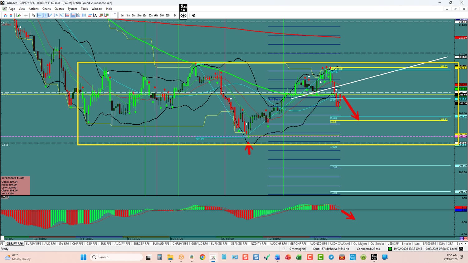 Forex Strategy is Bearish: We are currently @ 208.64 in the middle of a range. We are looking for a continuation to the ATR Target @ 207.75 area. The overall target is the S5 @ 207.22 area. We have the start of convergence on the hourly. USDX is currently up. Watch the USDX for direction. The average daily true range (ATR) for the pair currently is 180 pips per day and it’s 90-day average is 128 pips per day.
