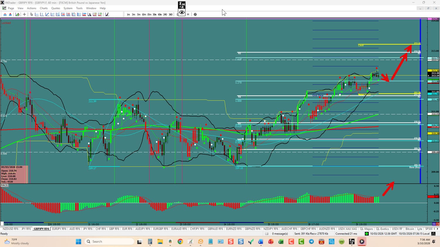 Forex Strategy is Bullish: We are currently @ 212.19 in a methodical upward channel. We are looking for a continuation to the R5 @ 212.95 after a short pullback. The overall target today is the ATR Target @ 213.22 area. We have convergence on the hourly. USDX is currently doing a right shoulder before it’s resumption. Watch the USDX for direction. The average daily true range (ATR) for the pair currently is 145 pips per day and it’s 90-day average is 133 pips per day.