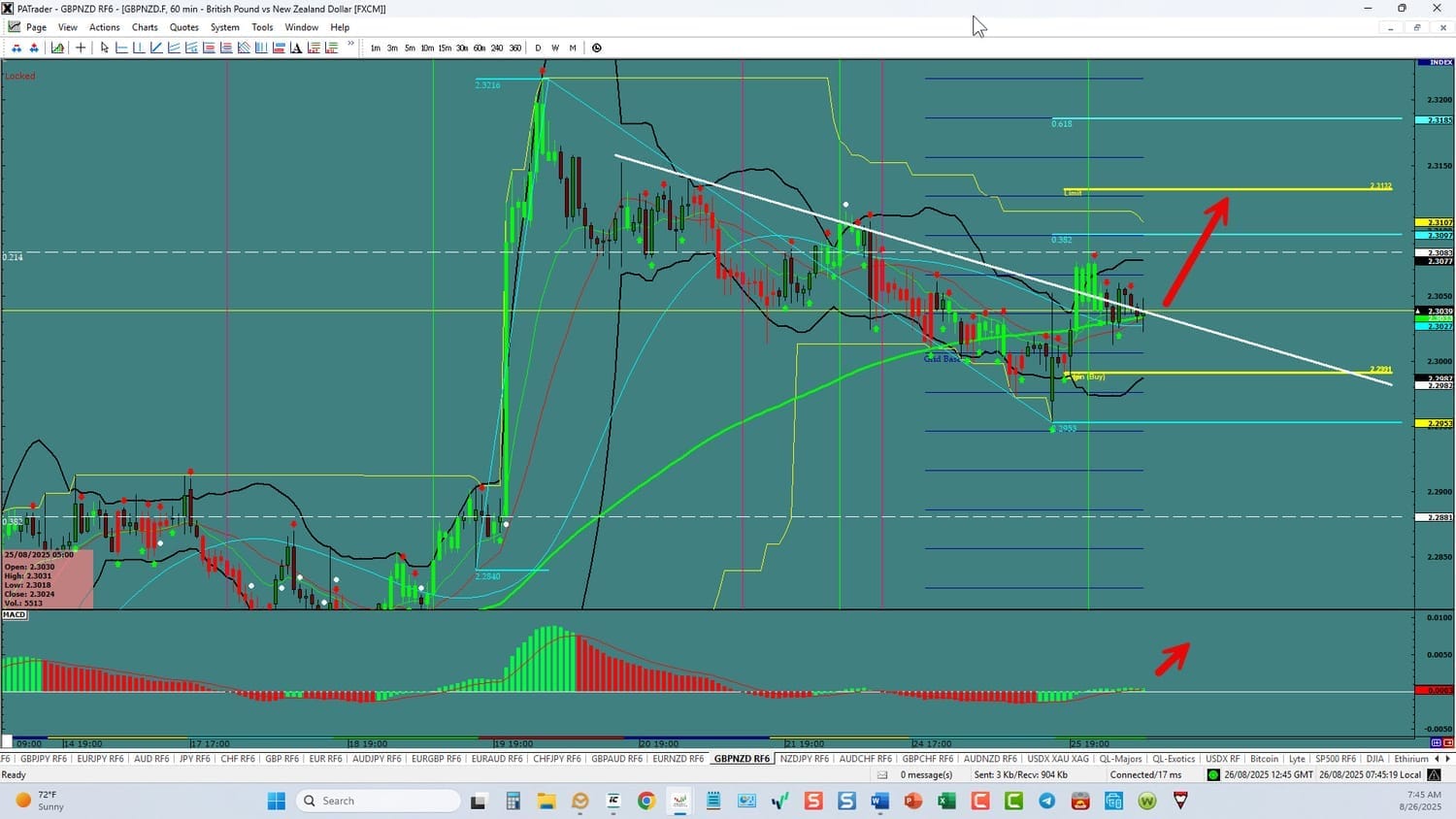 Forex Strategy Bullish: We are currently @ 2.3039. If we can break resistance here, we are looking for a continuation to the ATR target @ 2.3132 area with a further target the 0.618 Fibo @ 2.3185. USDX is currently stalled. Watch the USDX for direction. The average daily true range (ATR) for the pair currently is 141 pips per day and it’s 90-day average is 154 pips per day.