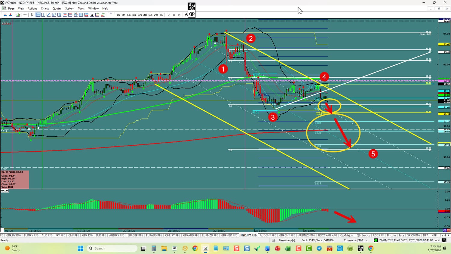 Forex Strategy is Bearish: We are currently @ 91.85 in a channel and 5th wave. We are looking for the first part today which is a continuation to the ATR Target @ 91.41area. The second part is the continuation to the S5 @ 90.26 area. We have start of convergence on the hourly. USDX is currently down. Watch the USDX for direction. The average daily true range (ATR) for the pair currently is 82 pips per day and it’s 90-day average is 83 pips per day.
