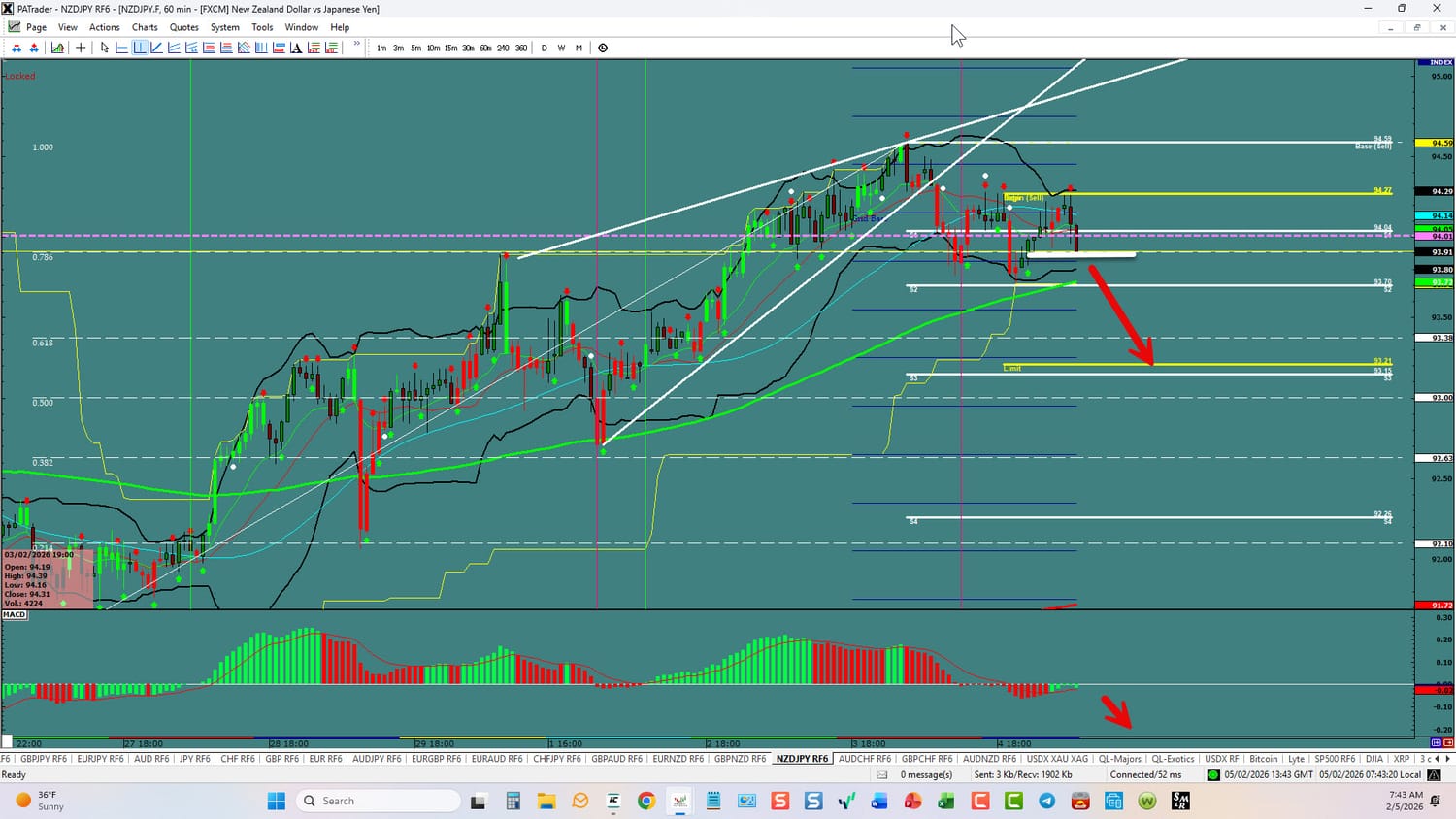 Forex Strategy is Bearish: We are currently @ 93.91 after a break of the risng wedge. We are looking for a continuation to the ATR Target @ 93.20 area. The overall target is the S4 @ 92.26 area. We have convergence on the hourly. USDX is currently up but in a short correction. Watch the USDX for direction. The average daily true range (ATR) for the pair currently is 115 pips per day and it’s 90-day average is 84 pips per day.