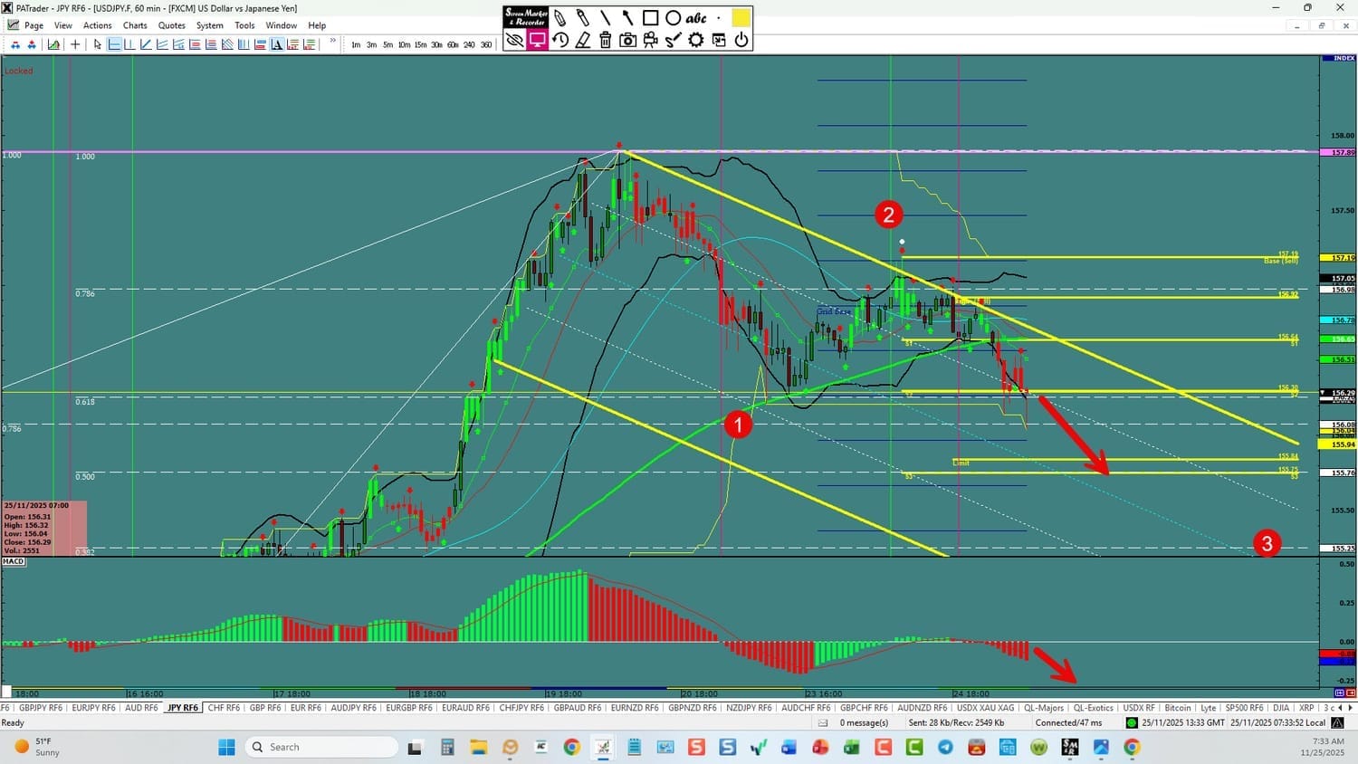 Forex Strategy is Bearish: We are currently @ 156.29 in a channel and 3rd wave. If we can break support here, we are looking for a continuation to the ATR Target @ 155.84 area with a further target the S3 155.76. We have convergence on the hourlies. USDX is currently down and just starting it’s move. Watch the USDX for direction. The average daily true range (ATR) for the pair currently is 108 pips per day and it’s 90-day average is 119 pips per day.