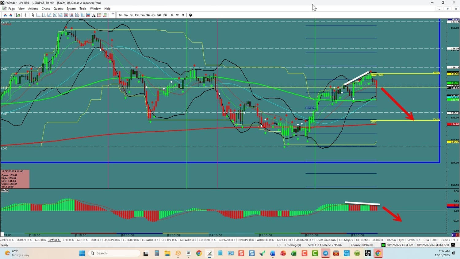 Forex Strategy is Bearish: We are currently @ 155.67 in a pullback. If we can break support here, we are looking for a continuation to the ATR Target @ 154.94 area. We have Divergence on the hourly. USDX is currently down. Watch the USDX for direction. The average daily true range (ATR) for the pair currently is 91 pips per day and it’s 90-day average is 100 pips per day.