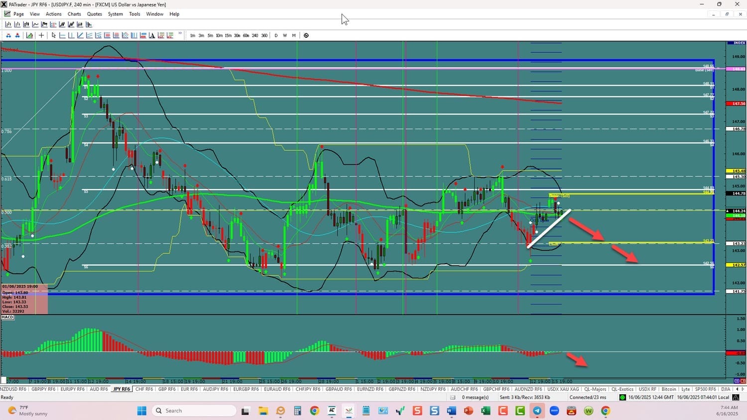 Forex Strategy is Bearish: We are currently @ 144.24 in a big Range. If we can break the bear flag, we are looking for a continuation to the ATR target @ 143.23 area today. A further target is the S6 Support @ 142.50. USDX is currently down. Watch the USDX for direction. The average daily true range (ATR) for the pair currently is 151 pips per day and it’s 90-day average is 164 pips per day