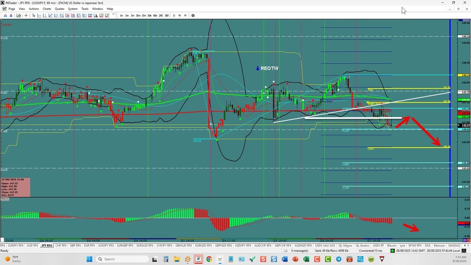 Forex StrategyBearish: We are currently @ 146.94 after a breakout. A slight pullback here, and we are looking for a continuation to the ATR target @ 146.38 area with a further target the 1.000 Fibo @ 145.98. USDX is currently down. Watch the USDX for direction. The average daily true range (ATR) for the pair currently is 113 pips per day and it’s 90-day average is 141 pips per day